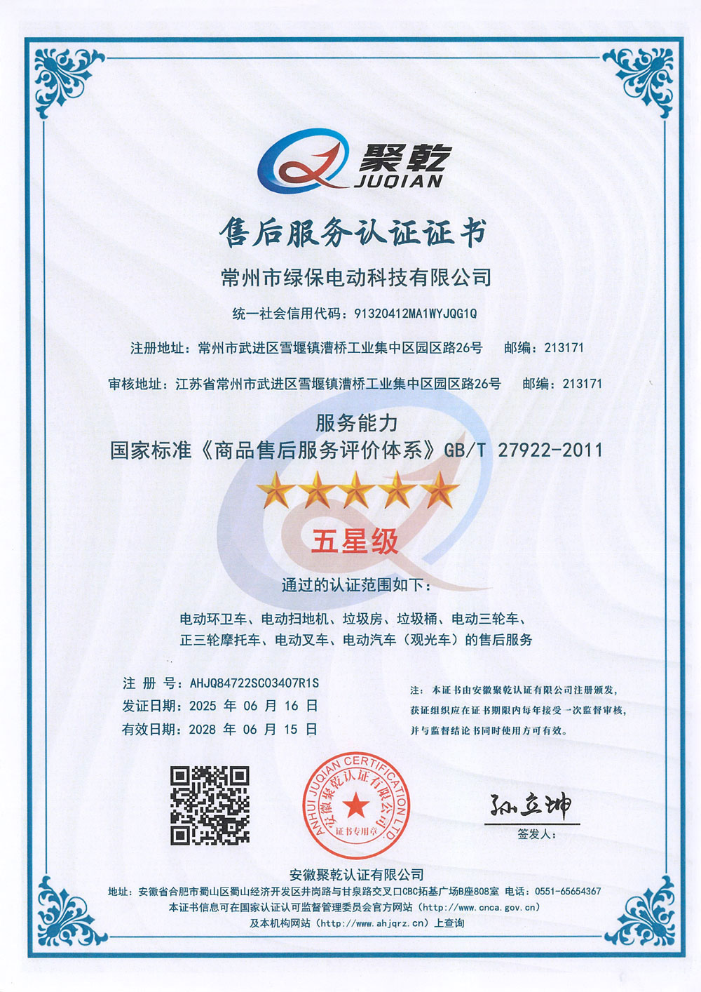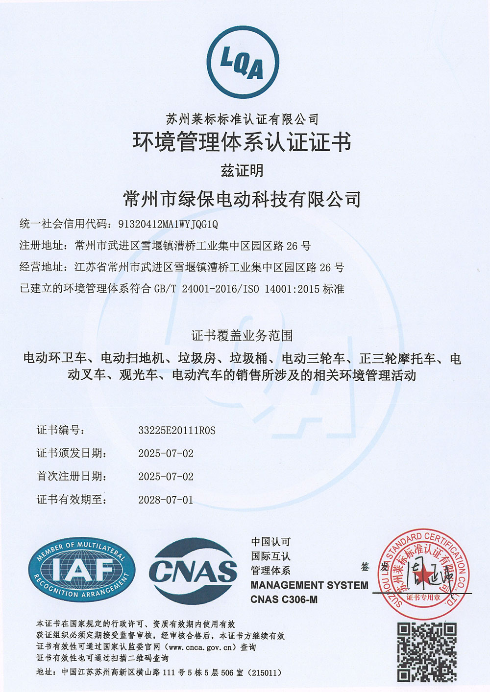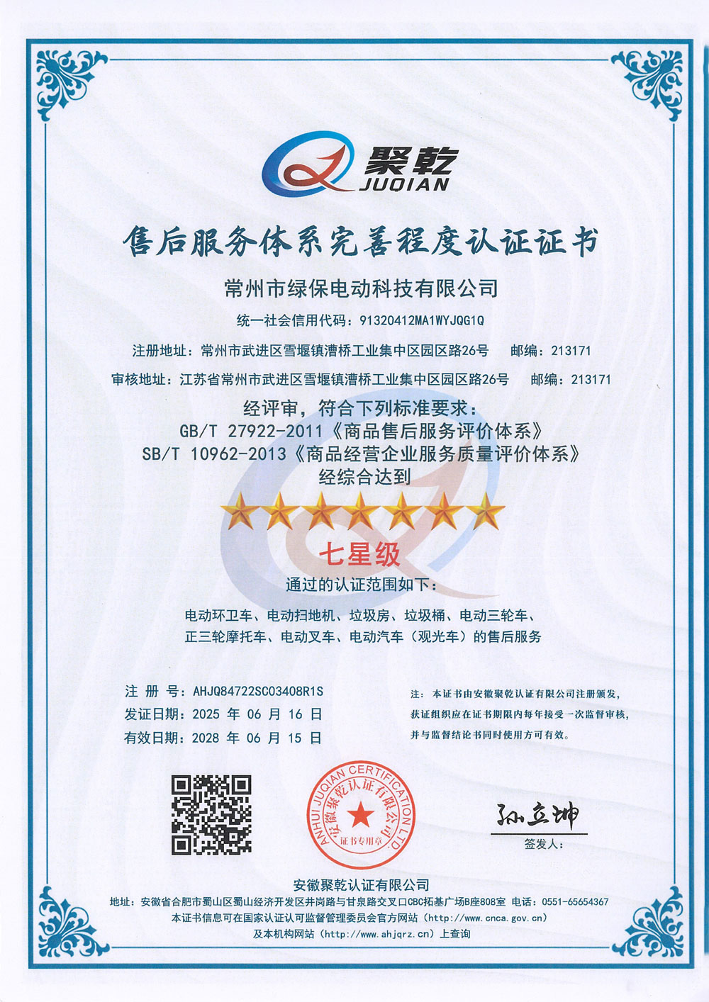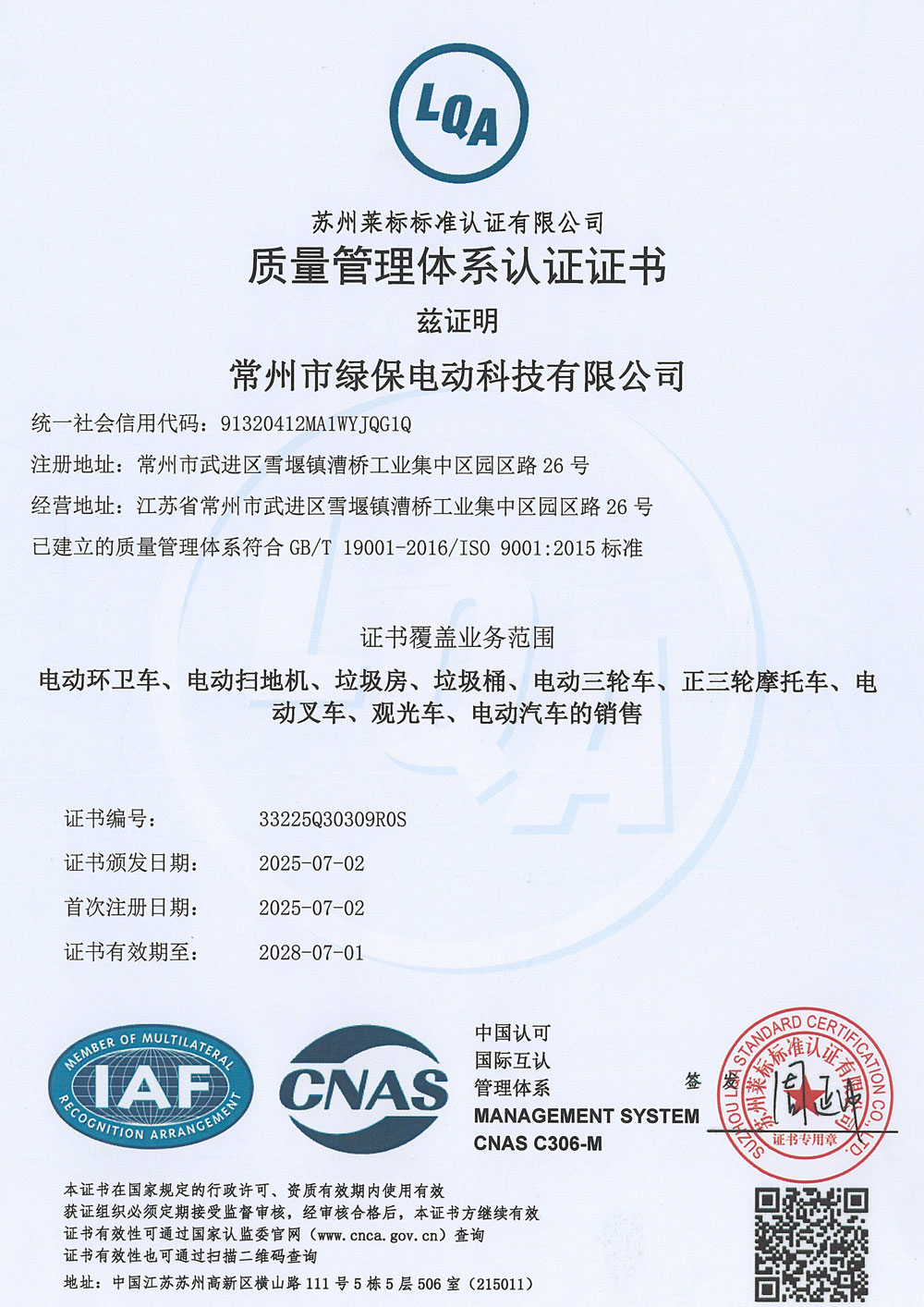 ООО Чанчжоу Люйбао Электрическая Технология, основанное в 2010 году, является предприятием первого уровня в реестре Министерства промышленности и информатизации КНР, высокотехнологичным предприятием провинции Цзянсу, частным научно-техническим предприятием провинции Цзянсу. Компания сертифицирована по международным стандартам качества ISO9001, системе экологического менеджмента ISO14001 и системе менеджмента профессионального здоровья и безопасности ISO45001. Компания специализируется на разработке и производстве грузовых электрических трициклов, электрических трехколесных мусоровозов, электрических четырехколесных мусоровозов, электрических трехколесных автомобилей для мойки под высоким давлением, интеллектуальных мусорных контейнерных площадок, интеллектуальных мусорных павильонов, электропогрузчиков, электрических гидравлических тележек на литиевых батареях, литиевых батарей, а также ключевых компонентов для новых энергетических транспортных средств. Являясь технически ориентированным производителем, компания профессионально занимается изготовлением электромобилей.
