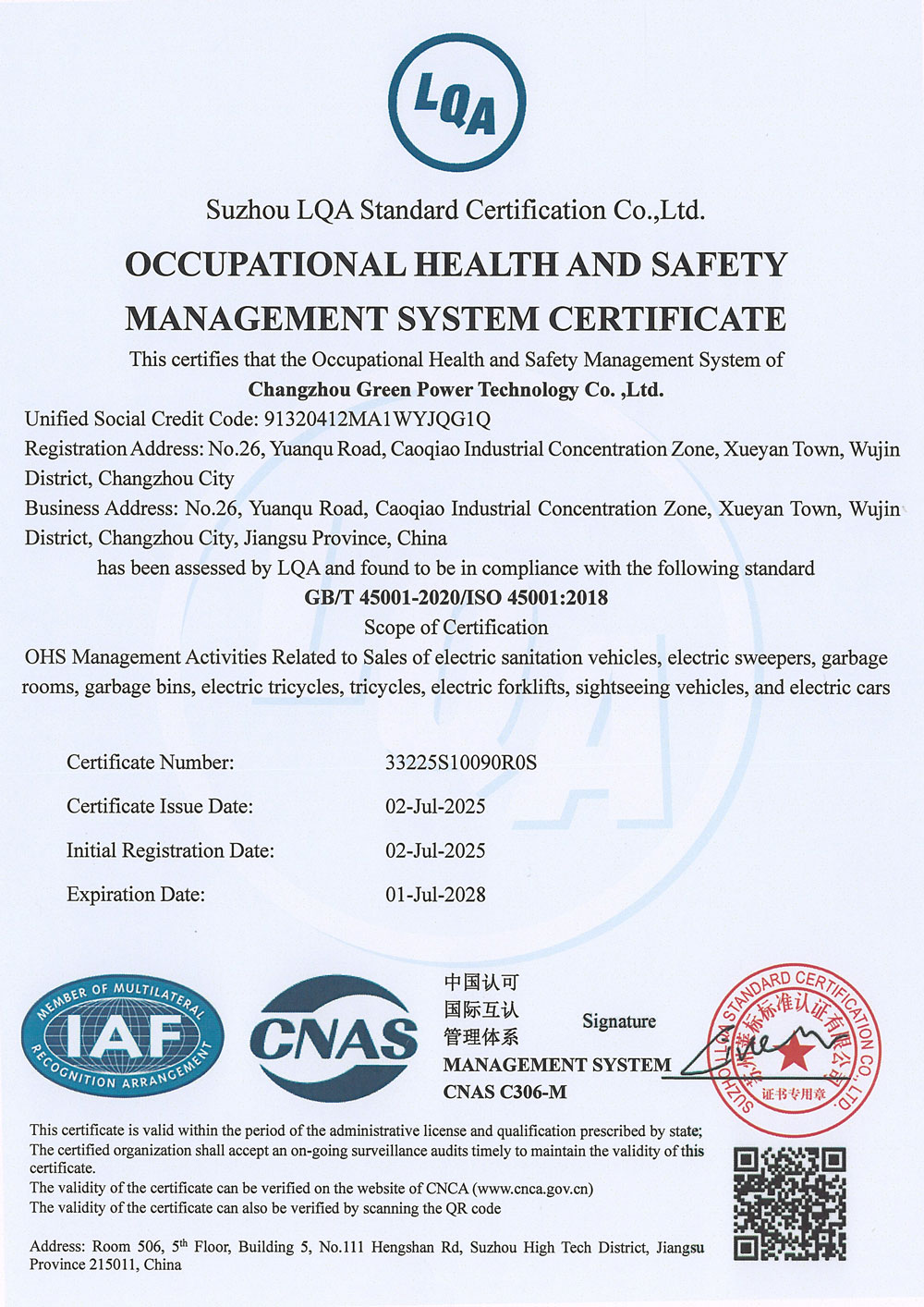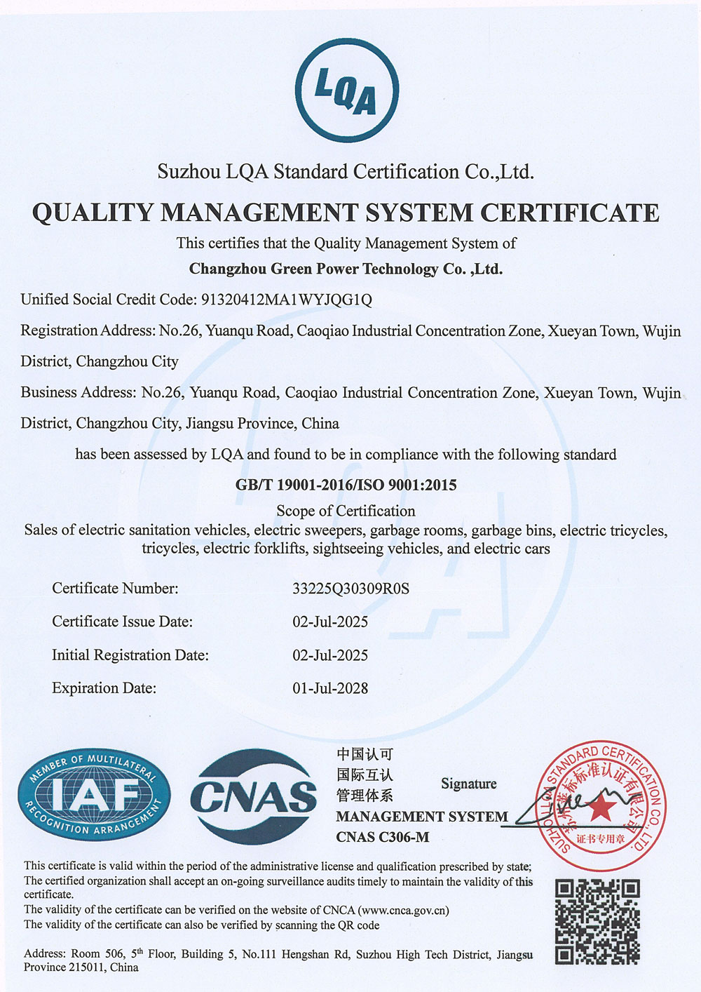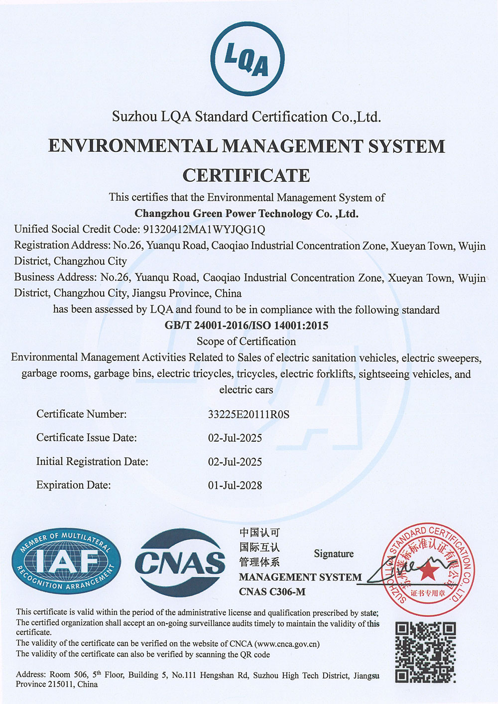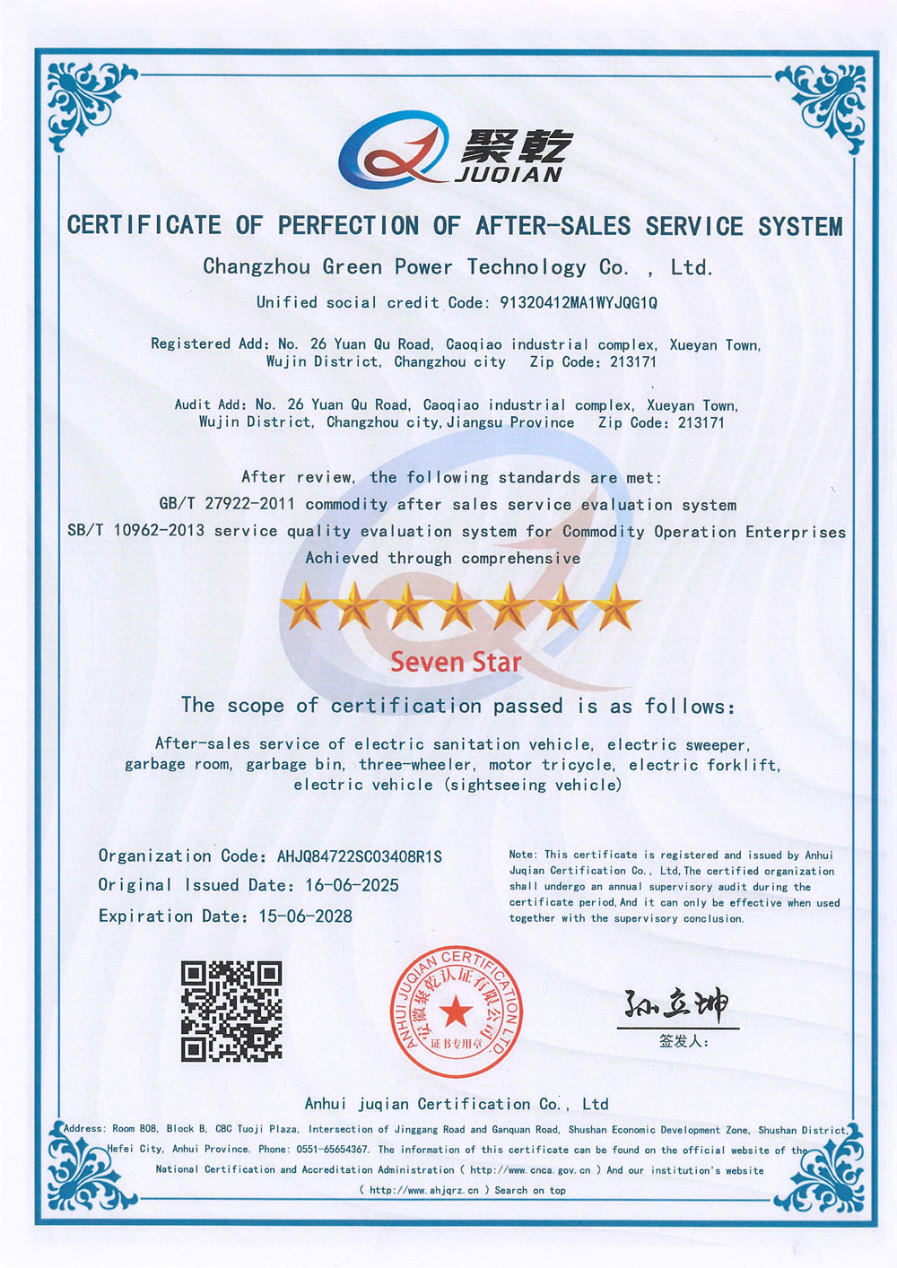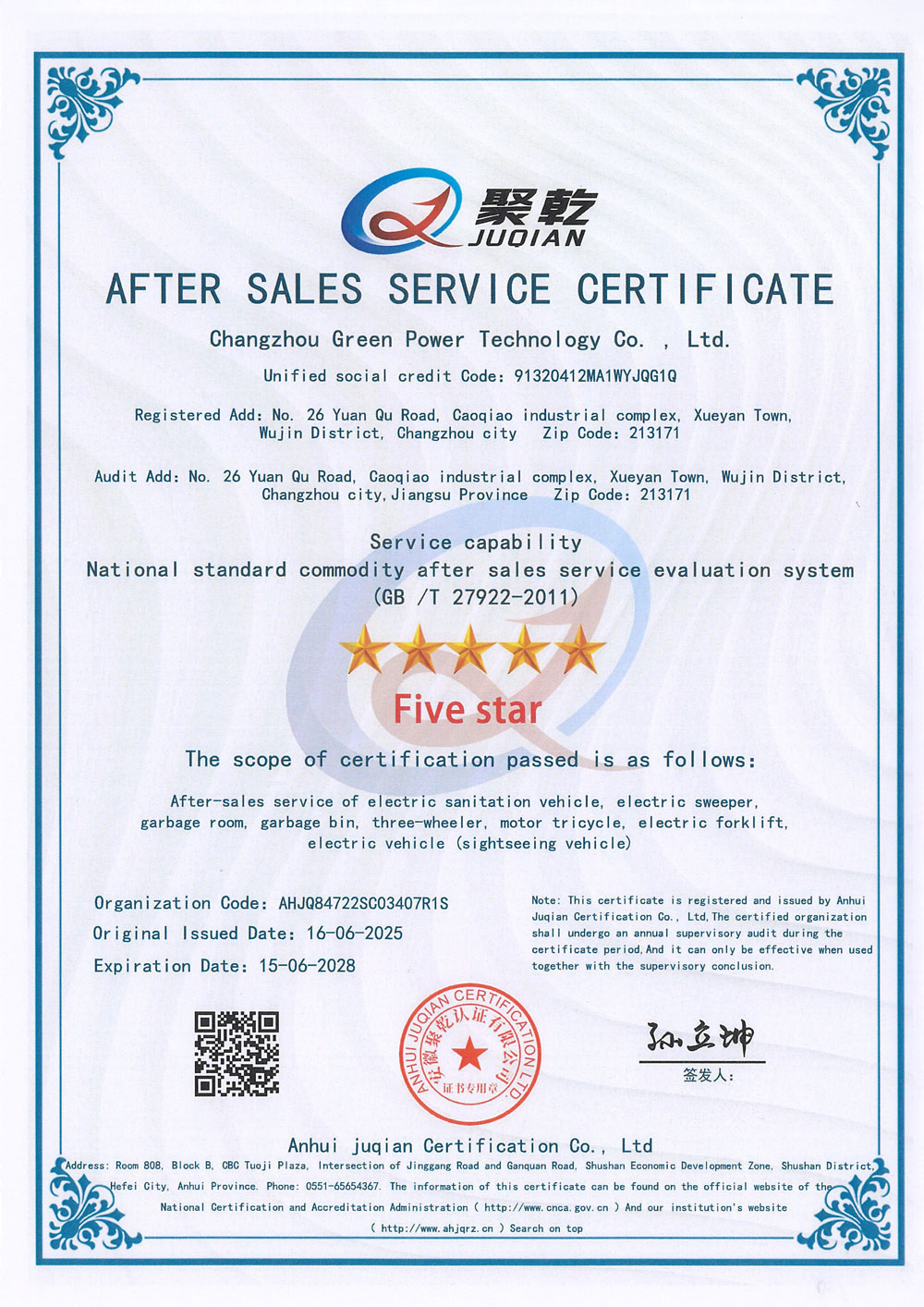 ООО Чанчжоу Люйбао Электрическая Технология, основанное в 2010 году, является предприятием первого уровня в реестре Министерства промышленности и информатизации КНР, высокотехнологичным предприятием провинции Цзянсу, частным научно-техническим предприятием провинции Цзянсу. Компания сертифицирована по международным стандартам качества ISO9001, системе экологического менеджмента ISO14001 и системе менеджмента профессионального здоровья и безопасности ISO45001. Компания специализируется на разработке и производстве грузовых электрических трициклов, электрических трехколесных мусоровозов, электрических четырехколесных мусоровозов, электрических трехколесных автомобилей для мойки под высоким давлением, интеллектуальных мусорных контейнерных площадок, интеллектуальных мусорных павильонов, электропогрузчиков, электрических гидравлических тележек на литиевых батареях, литиевых батарей, а также ключевых компонентов для новых энергетических транспортных средств. Являясь технически ориентированным производителем, компания профессионально занимается изготовлением электромобилей.